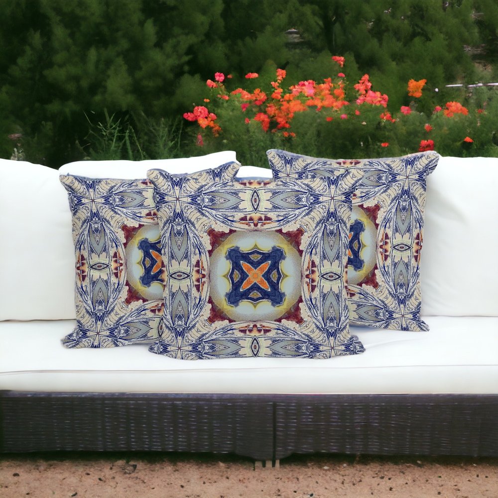 Add an air of fashion to your room and rejuvenate the space with this cute and fashionable set of three 16-inch x 16-inch blue and gray blown seam floral indoor outdoor throw pillow. The blue and gray coloring of the extremely durable and long lasting polyester pillows will add dimension and texture to your space. Durable and easy to care for this pillow is designed to withstand the elements and still look great. Decorative throw pillows add some pizazz but can also be comfy and supportive when you are lounging. 16-inch H x 16-inch W x 5-inch D