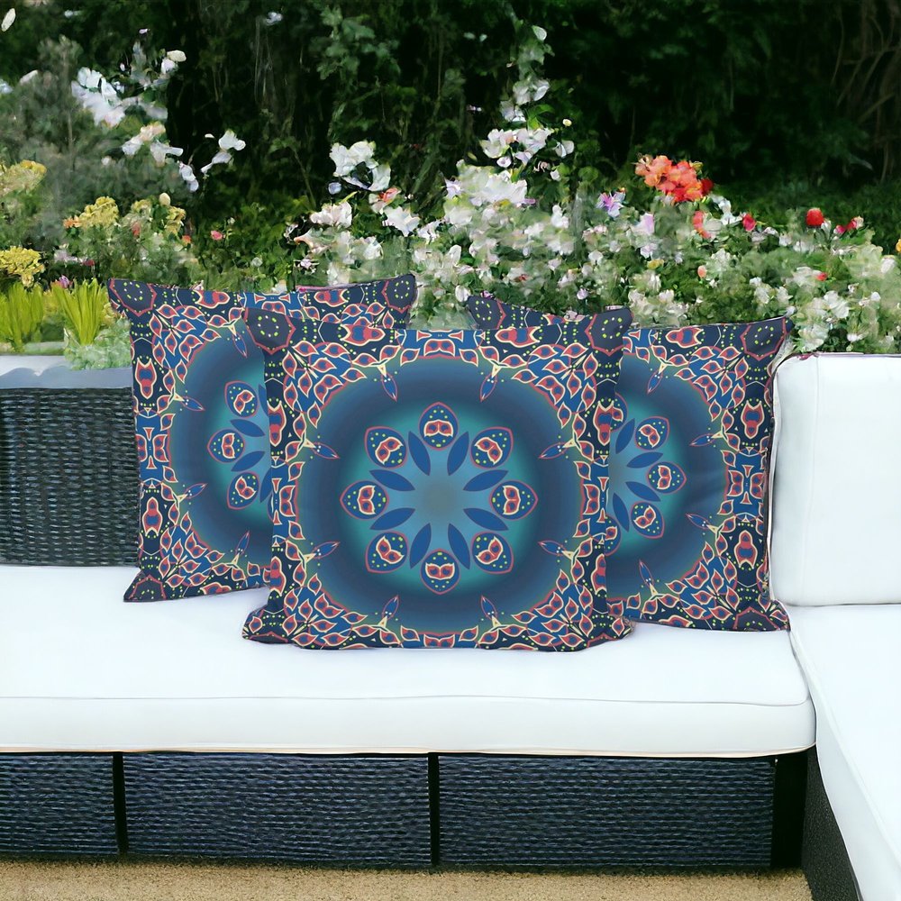 Set of Three 16" X 16" Blue and Pink Abstract Indoor Outdoor Throw