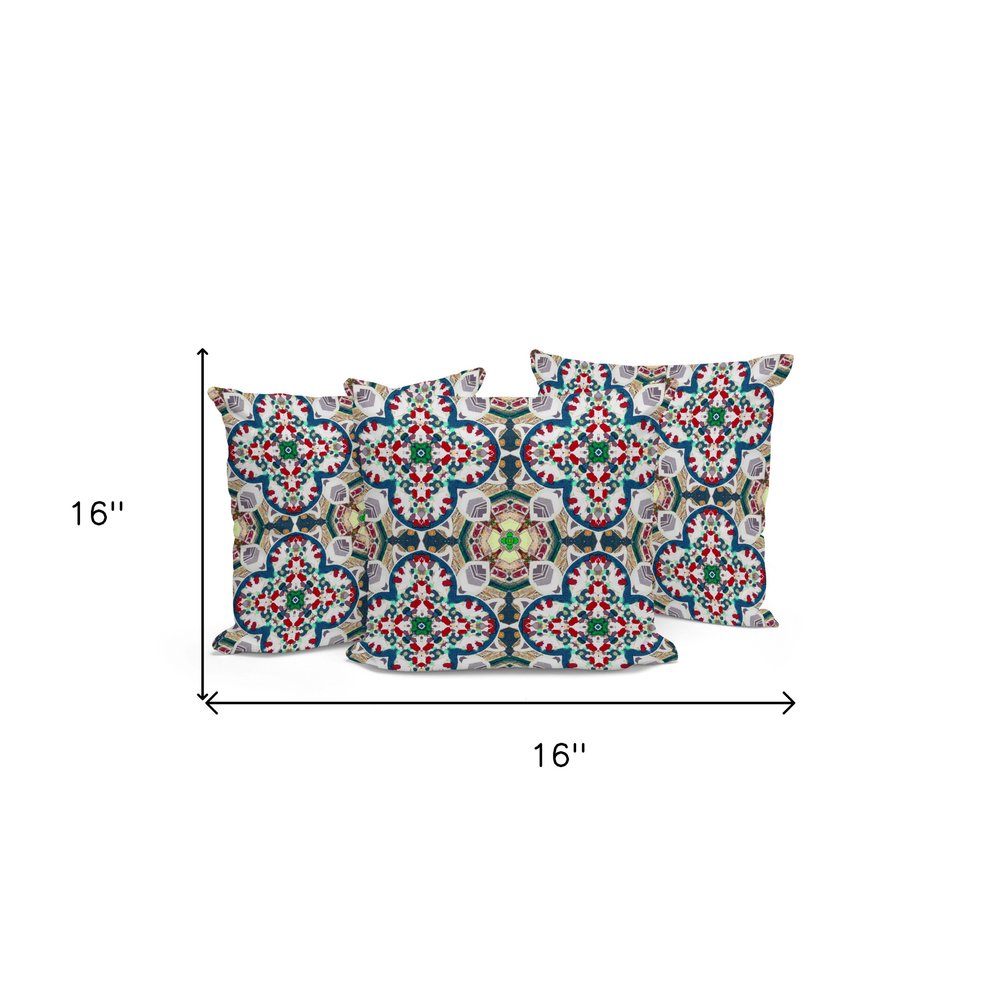 Set of Three 16" X 16" Green and White Blown Seam Floral Indoor Outdoor Throw Pillow