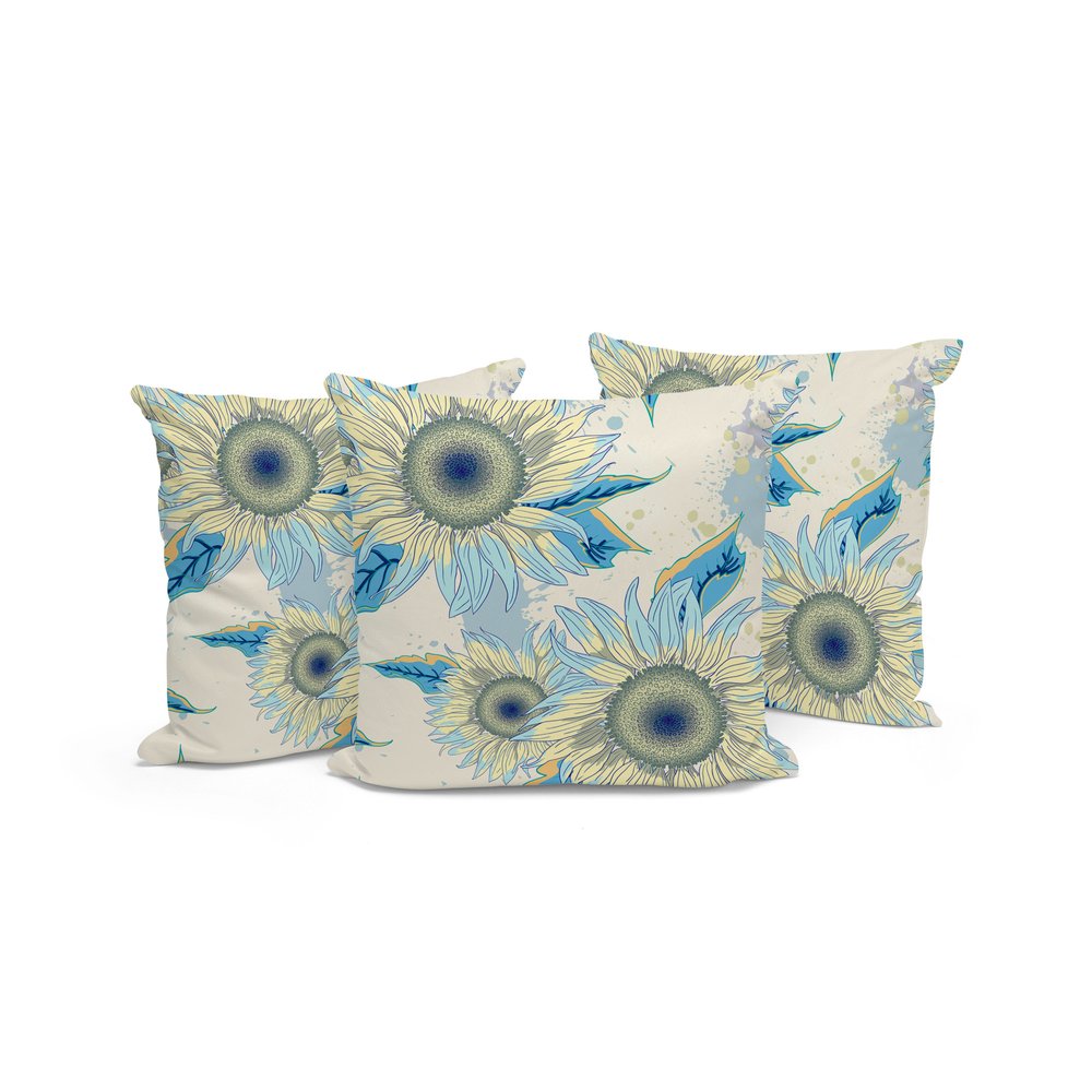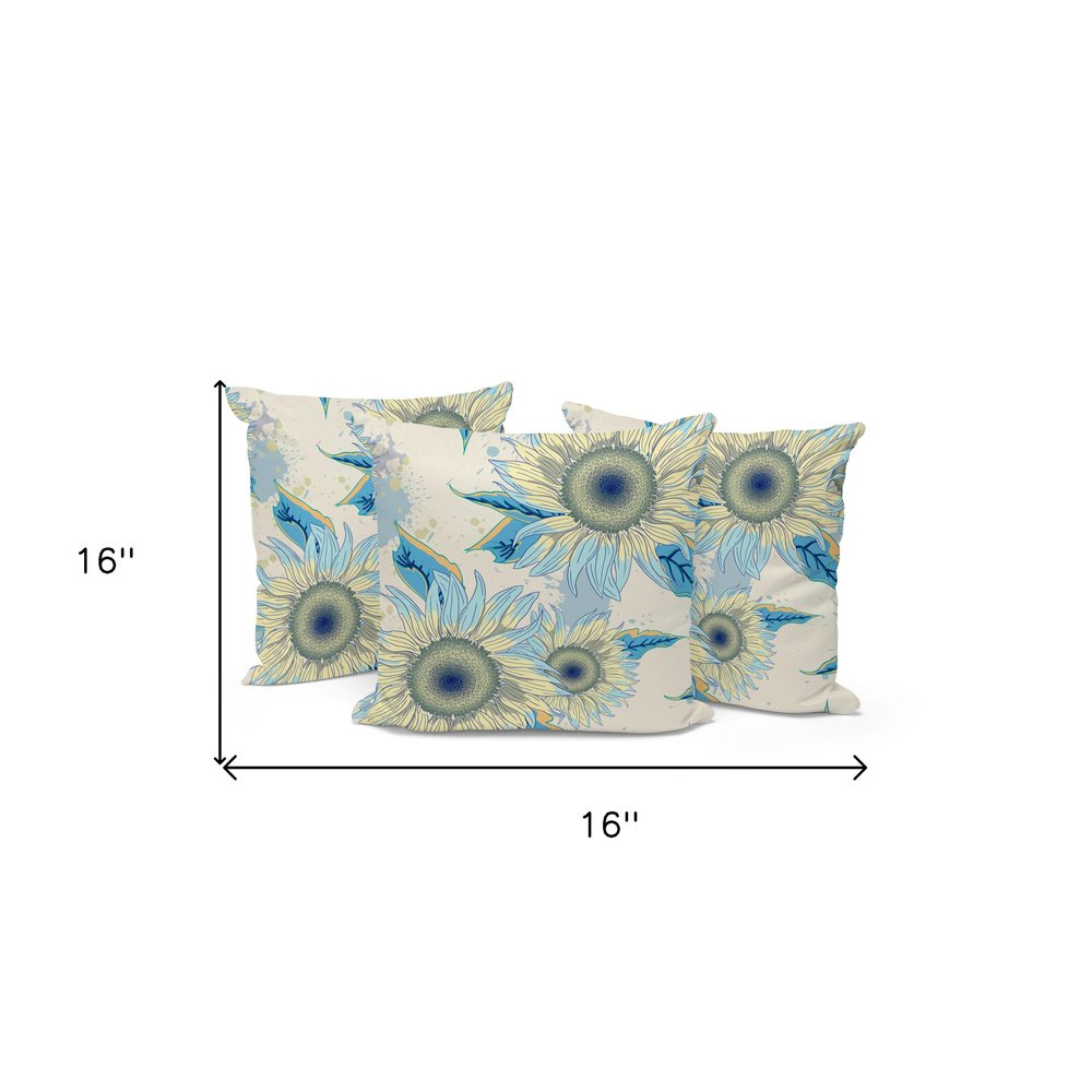 Set of Three 16" X 16" Green and Yellow Blown Seam Floral Indoor Outdoor Throw Pillow