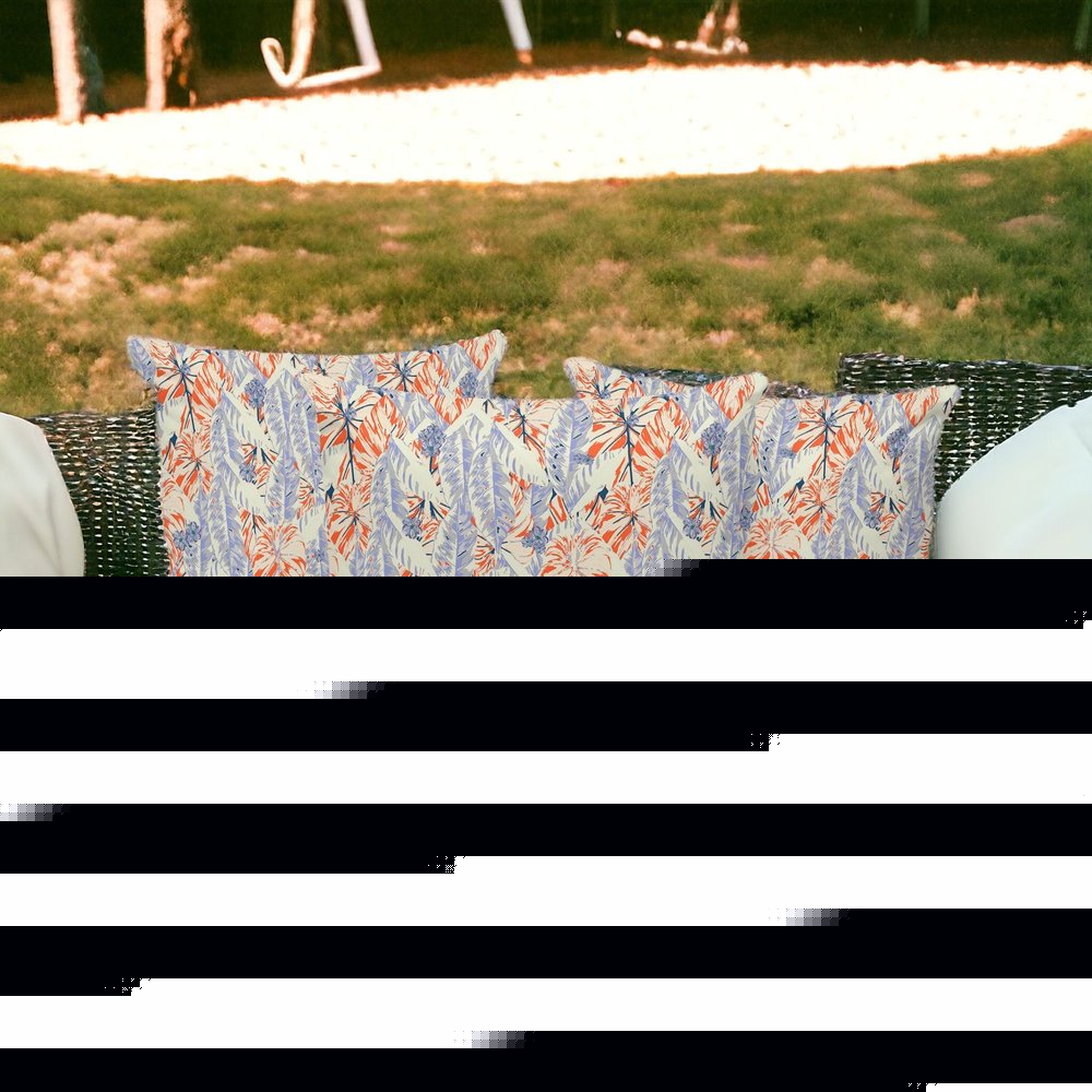 Set of Three 16" X 16" Orange and Ivory Botanical Indoor Outdoor Throw Pillow