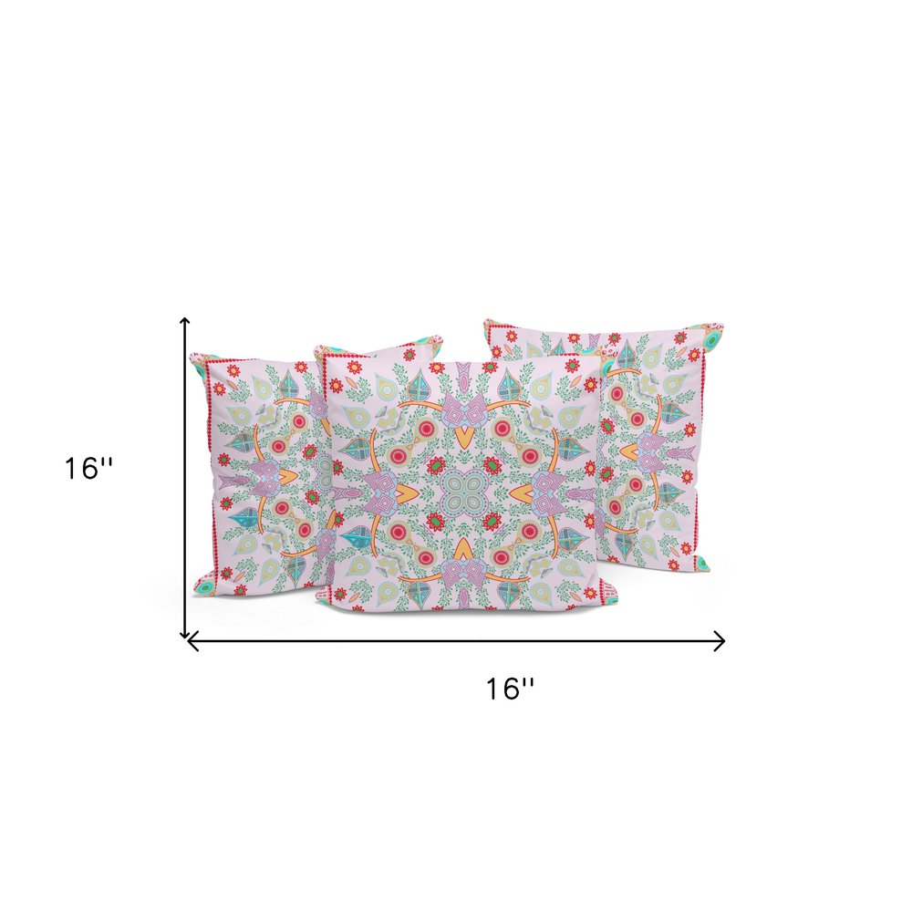 Set of Three 16" X 16" Red and Pink Blown Seam Paisley Indoor Outdoor Throw Pillow