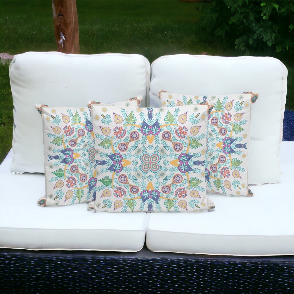 Set of Three 16" X 16" Yellow and White Blown Seam Paisley Indoor Outdoor Throw Pillow