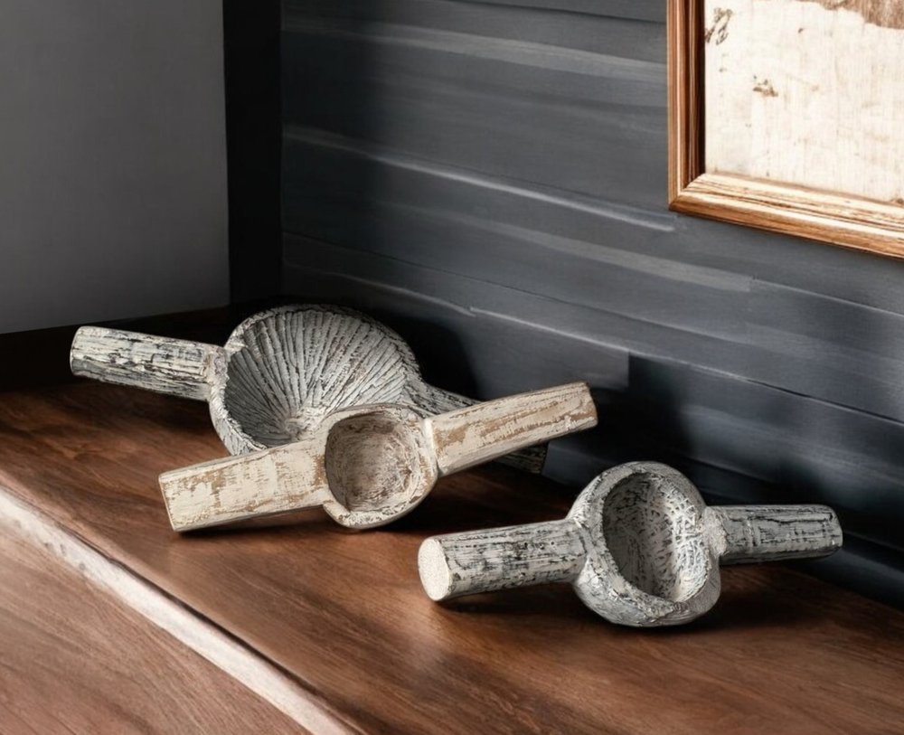 Unique and decorative, this set of three 3-inch white solid wood tabletop sculpture will leave a lasting impression. This charming decorative accent is expertly made of high grade solid wood in a white coloration. A perfect decorative addition for anyone who loves a stylish look and feel. 3-inch h x 5-inch w x 12-inch d.