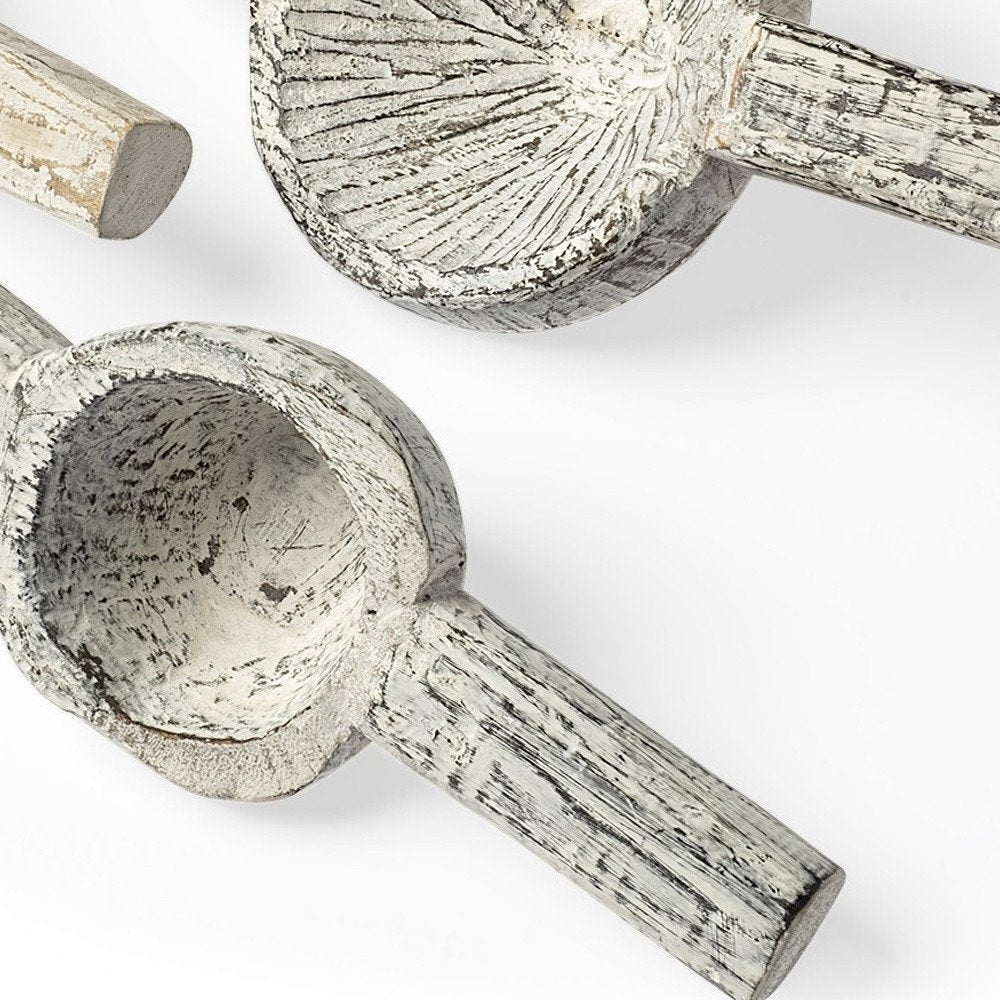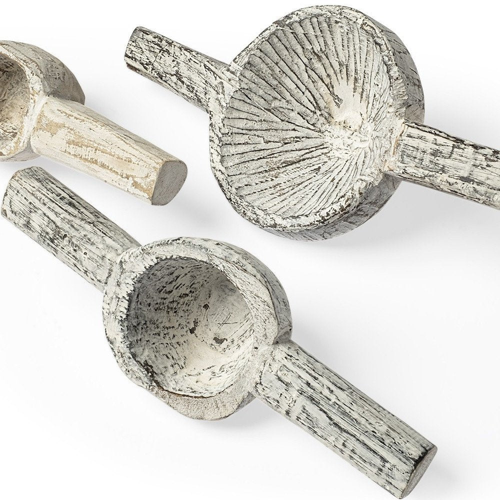 Set of Three 3" White Solid Wood Tabletop Sculpture