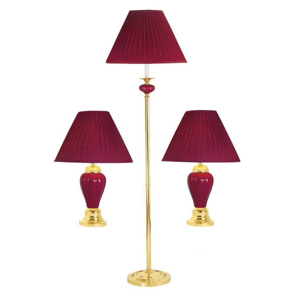 Embrace the good life with this hard working and stylish set of three 64" gold ceramic bedside floor and table lamp set with red empire shade. The lamp is made of sturdy ceramicand features a gold color. Includes a red fabric, empire shaped shade, making this a fashionable piece that will complement most any interior. Bedside table lamps help to add a soft and cozy glow to your bedroom. Great for evening reading! The light that this lamp throws is soft and warm to elevate the look of most any space in your home. It is perfect for virtually any decor. 64" H x 10" W x 10" D