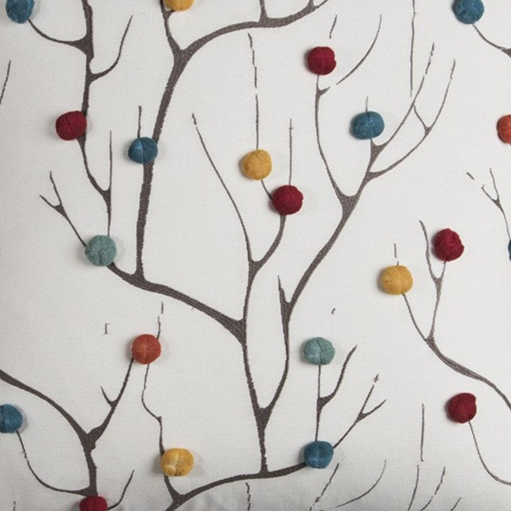 Bring a bit of fashion and zip to your space with this eye-catching and comfy 20-inch white and black coral indoor outdoor throw pillow with pompoms. Charming decorative pom-poms give this design texture along with a hand-crafted look and feel. Durable and rugged enough for outdoors but can still be used inside as well. Great to use on its own or mix with other decorations for the perfect look. 20-inch h x 20-inch w x 6.25-inch d.