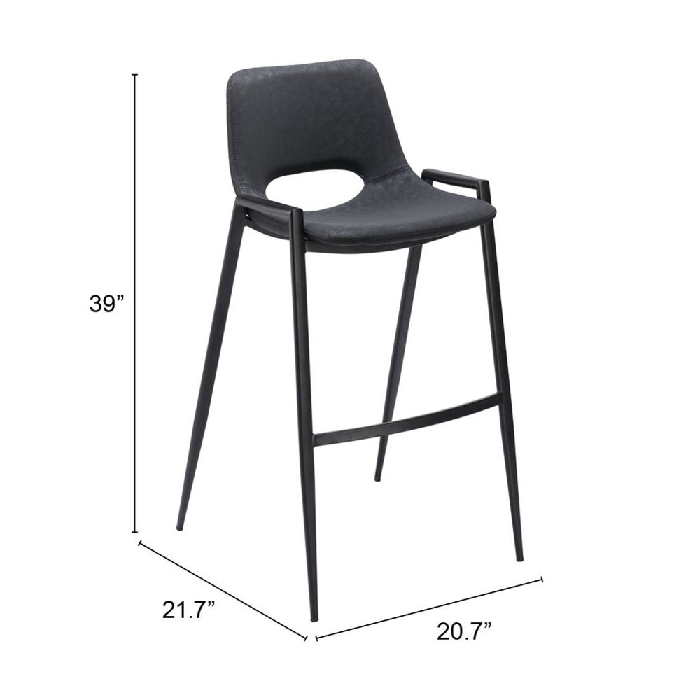Comfortable enough to sit in for awhile, this set of two 30-inch black faux leather and steel low back bar height bar chairs will transcend the look of your room. The base of this stool is made from steel in a black, that matches the faux leather, also in black. A low back mixed with a bucket shaped seat design makes this chair both comfortable and fashionable. Designed with armrests for your comfort, this chair also features a footrest for comfort and convenience. 39-inch H x 20.7-inch W x 21.7-inch D