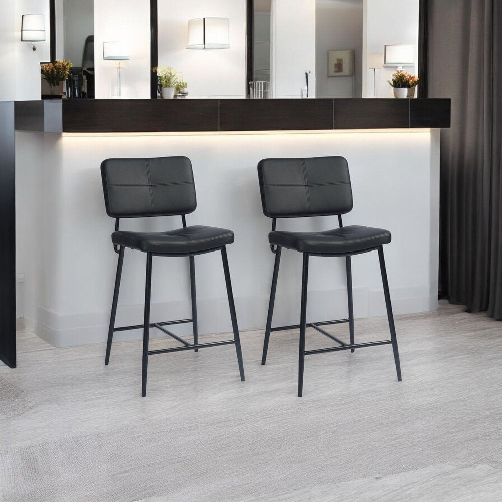 Set Of Two 36" Black Faux Leather Low Back Counter Height Bar Chairs