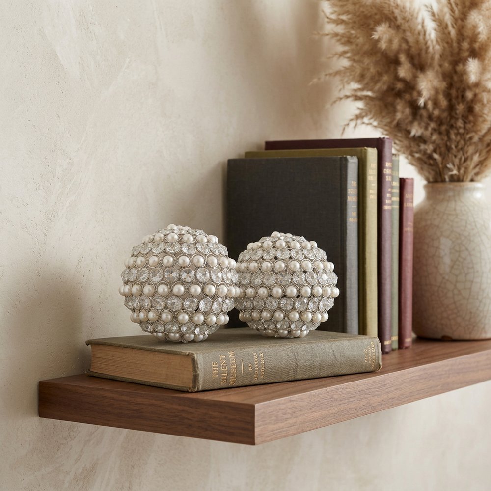 Unique and decorative, this set of two 5" silver and clear faux crystal decorative orb sculptures will leave a lasting impression. The silver and clear coloring of this high quality faux crystal and silver accent will look great in most any space. Great to use on its own or mix with other decorations for the perfect look. Use this piece as bookshelf decor, on your desk, coffee table, or anywhere in your home. 5" H x 5" W x 5" D