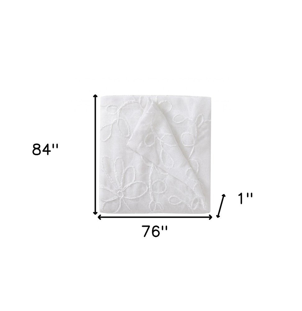 Enhance the beauty of your windows with this set of two 84-inch white floral embroidered window panels. Made of high-quality polyester, these contemporary-style curtains feature a semi-sheer design that softly filters light into your space. Each panel measures 38 inches in width, providing ample coverage for your windows. With a length of 84 inches from top to bottom, these white curtains create an elegant and sophisticated look in any room. The exquisite floral embroidery adds a touch of charm and grace to your home decor. Perfect for bedrooms, living rooms, or dining areas, these window panels effortlessly bring a refreshing and airy feel to your space. Transform your windows into an enchanting focal point with this stylish curtain set. 84-inch H x 76-inch W x 1-inch D