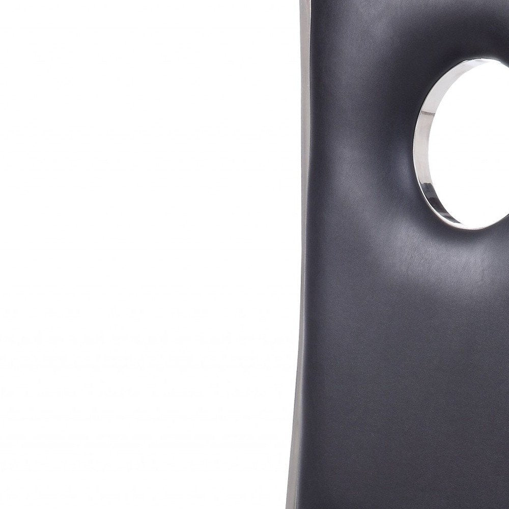 Set of Two Black And Silver Upholstered Faux Leather Dining Side Chairs