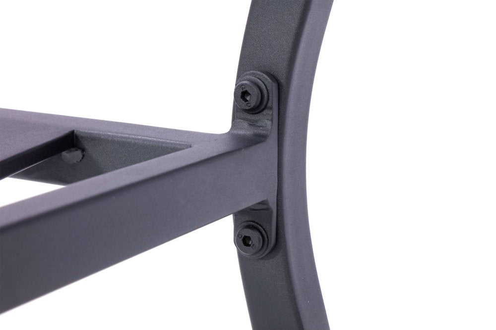 Experience the perfect blend of form and function with the set of two dark gray aluminum outdoor stacking dining chairs with light gray cushion, designed to withstand the elements while providing exceptional comfort and timeless design. Includes detachable cushions that provide you with the option to bring them indoors during unfavorable weather conditions, keeping them protected and ensuring their longevity. Let these light gray cushions be a vibrant expression of your personal style, infusing your living area with colors that perfectly resonate with your aesthetic. Enjoy the good life everyday with this fashionable outdoor seating option. 37.5-inch h x 26.1-inch w x 22.2-inch d.
