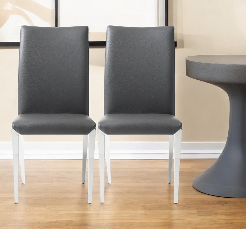 Set of Two Dark Gray And Silver Upholstered Faux Leather Dining Side Chairs
