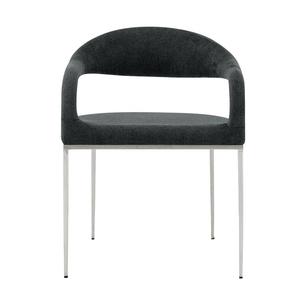 Make your dining experience the best with this set of two gray and silver upholstered polyester open back dining arm chairs. The open back gives this chair its unique style. Dining chairs are a great way to compliment your kitchen or dining room but can also be used in the foyer, hallway, or any room you might need extra seating. 30-inch H x 21-inch W x 22-inch D