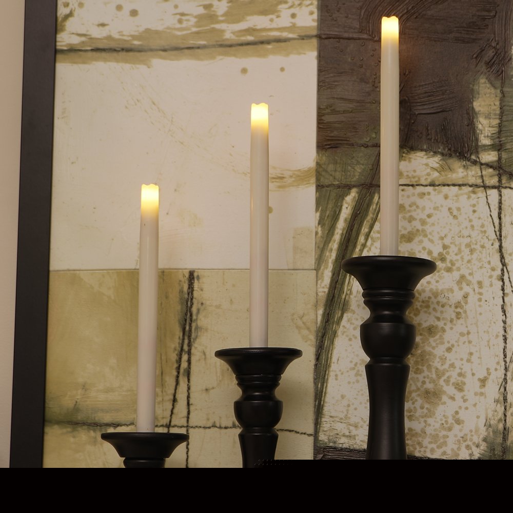 Transform your space with the radiance of this set of two ivory flameless taper candle. The slender form and graceful nature of our tapered candles creates a visual delight that captures attention and enhances the ambiance of any room. Indulge in the authentic charm of beeswax. The flickering feature is designed to create an authentic candlelight experience. Let the warm glow of candlelight create an intimate and welcoming ambiance for your guests or a soothing atmosphere for yourself. 9-inch H x 5-inch W x 5-inch D