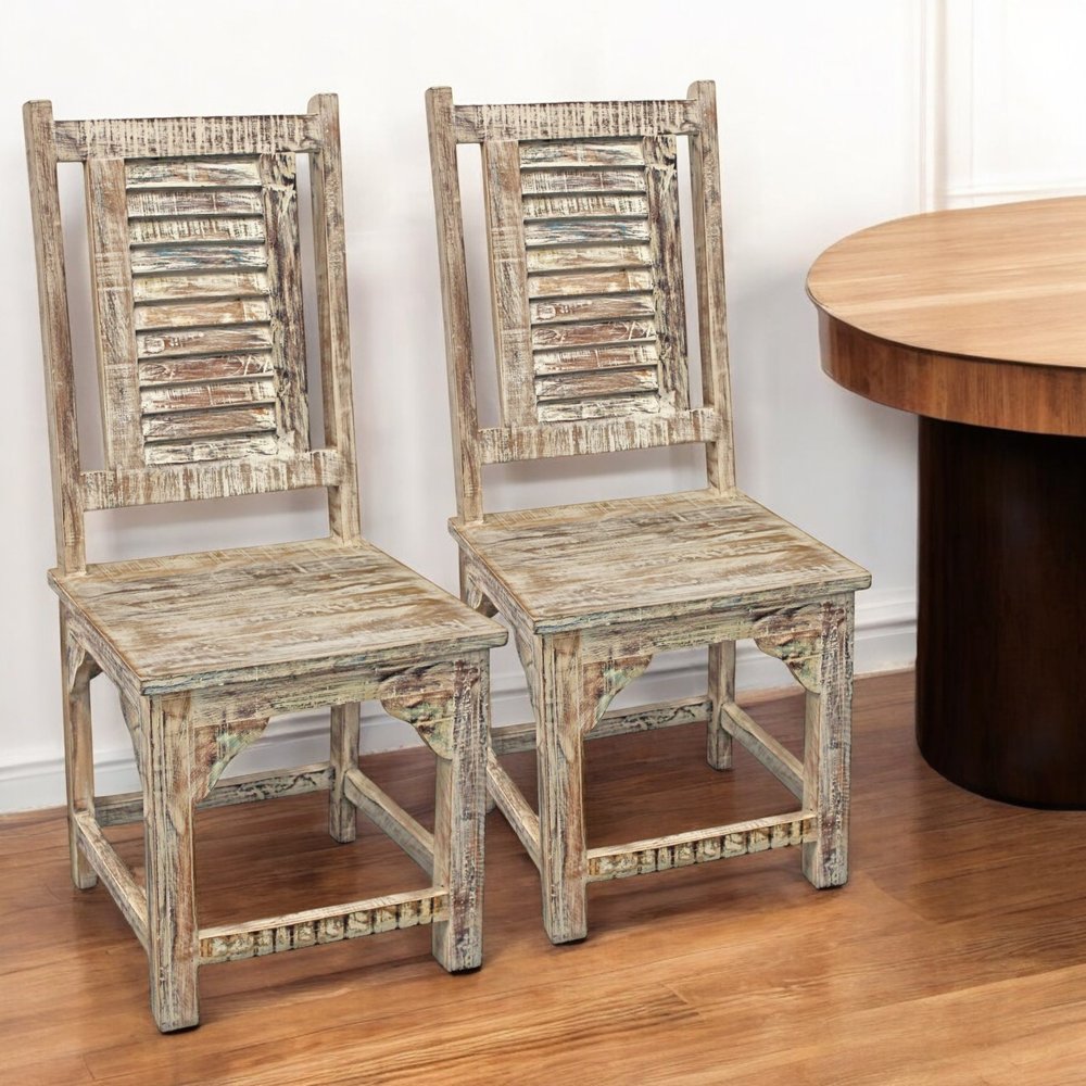 Make your dining room stand out with the set of two light brown wood slat back dining side chairs. The side chair has no arms so it can easily fit around the table. Can also be used as an accent in living room or bedroom. Complete with slat back, this chair not only looks good but is comfortable. A distressed finish is used to create a slightly rustic and vintage touch. Dining chairs are a great way to compliment your kitchen or dining room but can also be used in the foyer, hallway, or any room you might need extra seating. 42-inch H x 18-inch W x 18-inch D