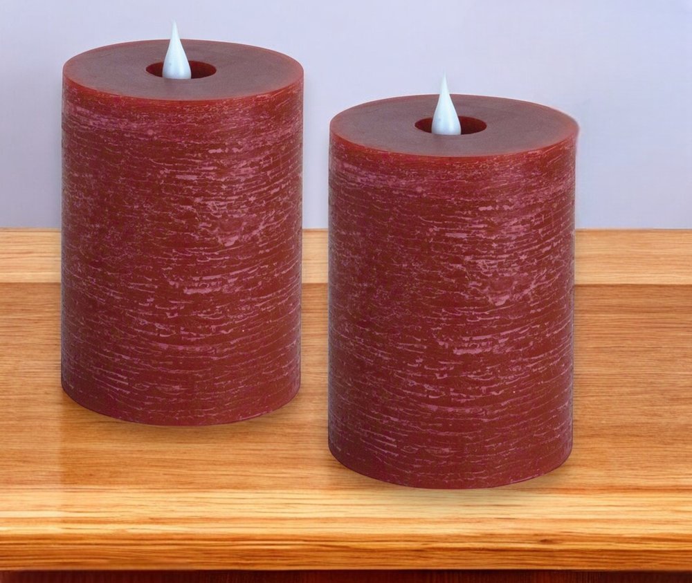 Transform your space with the radiance of this set of two red flameless designer candle. This designer candle is a stunning blend of form and function that adds a touch of elegance and sophistication to any space. Using modern technology, this flameless candle gives mesmerizing ambiance of a flickering candle. This candle includes a remote control so you can be in charge of the various settings and features. Let the warm glow of candlelight create an intimate and welcoming ambiance for your guests or a soothing atmosphere for yourself. 5.5-inch H x 3.5-inch W x 3.5-inch D