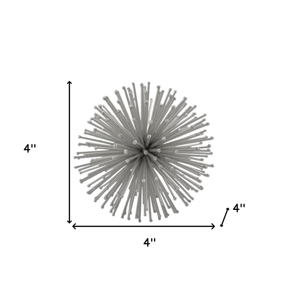 Unique and decorative, this set of two silver iron decorative spiky sphere tabletop sculpture will leave a lasting impression. This charming decorative accent is expertly made of high grade iron in a silver coloration. A perfect decorative addition for anyone who loves a stylish look and feel. 4-inch h x 4-inch w x 4-inch d.