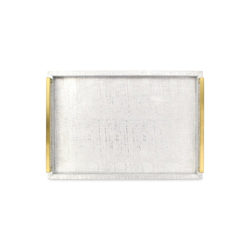 This set of two silver wood and vinyl geometric handmade serving tray with handles will add a beautiful decorative accent to your decor. Decorated with a geometric designed pattern, this piece is not only useful but a great decorative accent as well. Designed with handles for easy transport and convenience. Intended for decorative, non-food use only, it's perfect for displaying a collection of candles, perfume, décor, and more. Each set comes with two pieces that can be used separately or together. 2.25-inch H x 17.75-inch W x 12.5-inch D