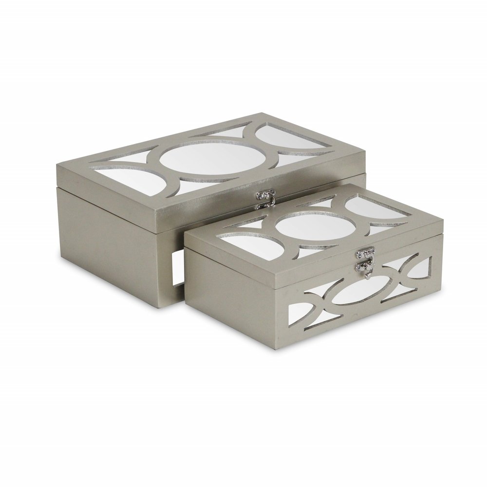 Set of Two Champagne Mirrored Glass And Wood Box With Lid