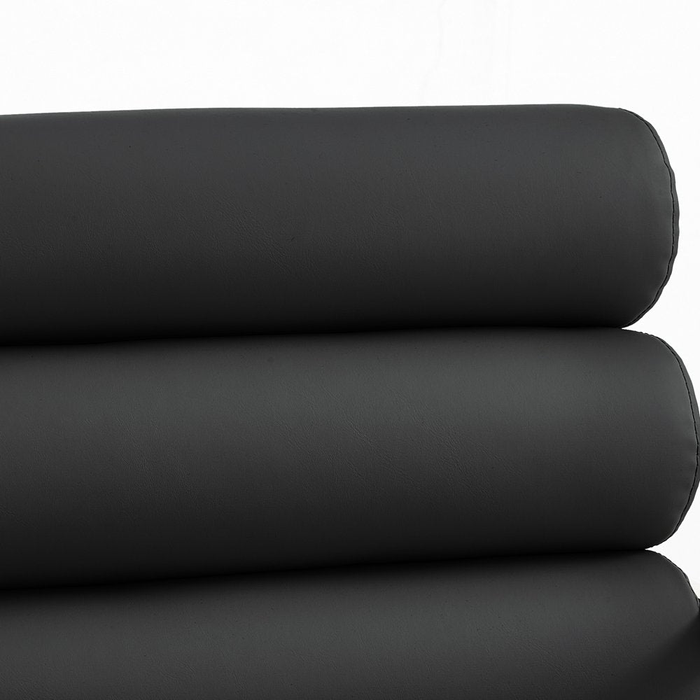Bring this comfortable set of two tufted black and gold upholstered faux leather dining arm chairs to your table to enjoy long lasting quality time with your family and friends. The addition of a tufted design gives this chair some extra special flair. The solid back gives this chair its unique style. Dining chairs are a great way to compliment your kitchen or dining room but can also be used in the foyer, hallway, or any room you might need extra seating. 37-inch H x 27.8-inch W x 22-inch D