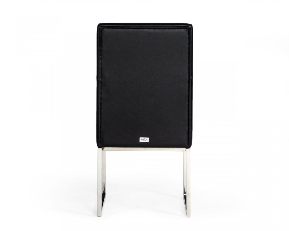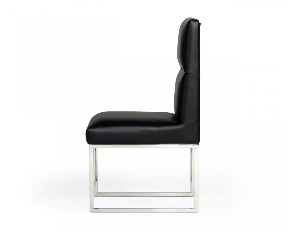 Set of Two Tufted Black And Silver Upholstered Faux Leather Dining Side Chairs