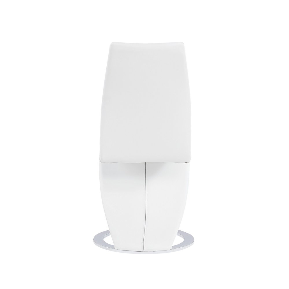 Make your dining experience the best with this set of two white and silver upholstered faux leather dining parsons chairs. Complete with solid back, this chair not only looks good but is comfortable. Dining chairs are a great way to compliment your kitchen or dining room but can also be used in the foyer, hallway, or any room you might need extra seating. 39-inch H x 18-inch W x 18-inch D