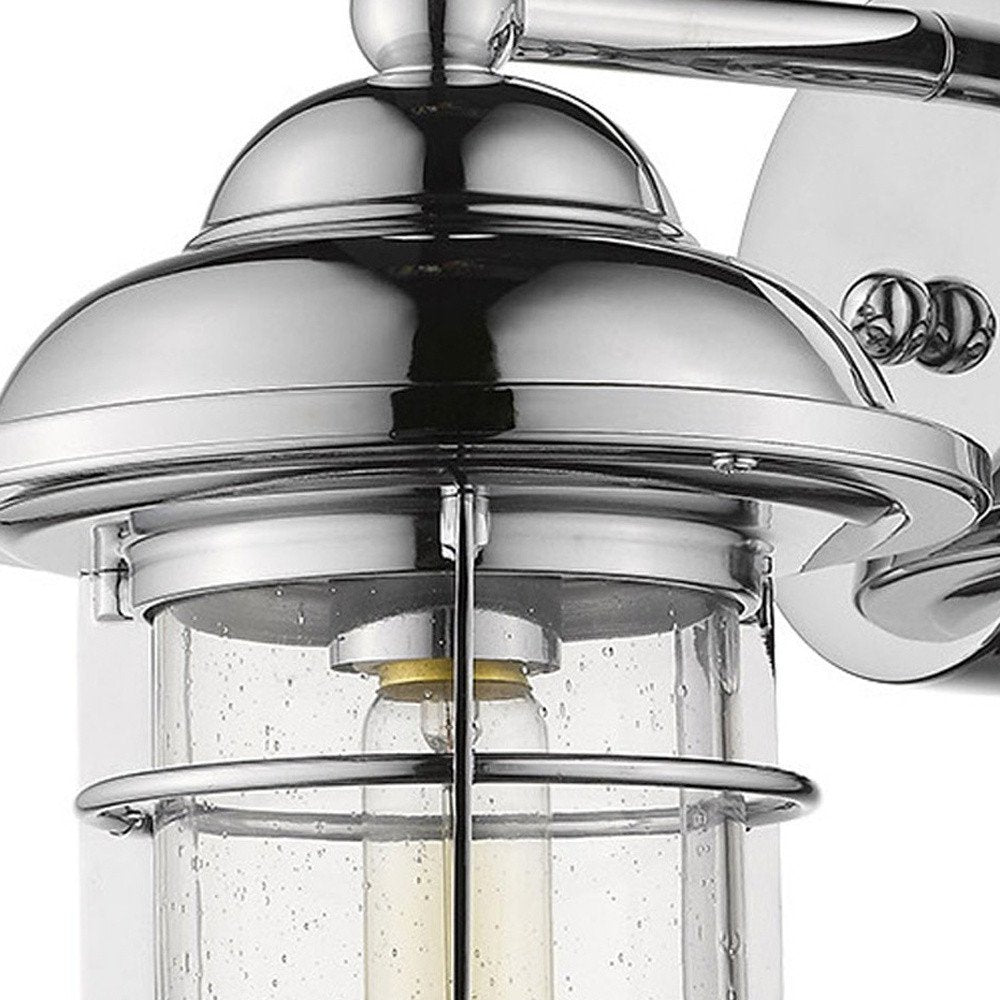 Add a touch of traditional design to any space in your home with this Silver Teardrop Shape Wall Sconce. The wall bracket has a simple circular shape and a hanging arm that is attached to the main sconce shape. The top of the sconce has a two-tier dome shape which extends downwards into a tapered cage frame with a pointy end at the bottom. The metal pieces are all colored in a silver finish. Inside the frame there is an urn shaped clear glass globe which houses the bulb. This sconce will add elegance and style to your interior and exterior spaces and provide ambient lighting as well. 12.5" H x 7.5" W x 8.5" D