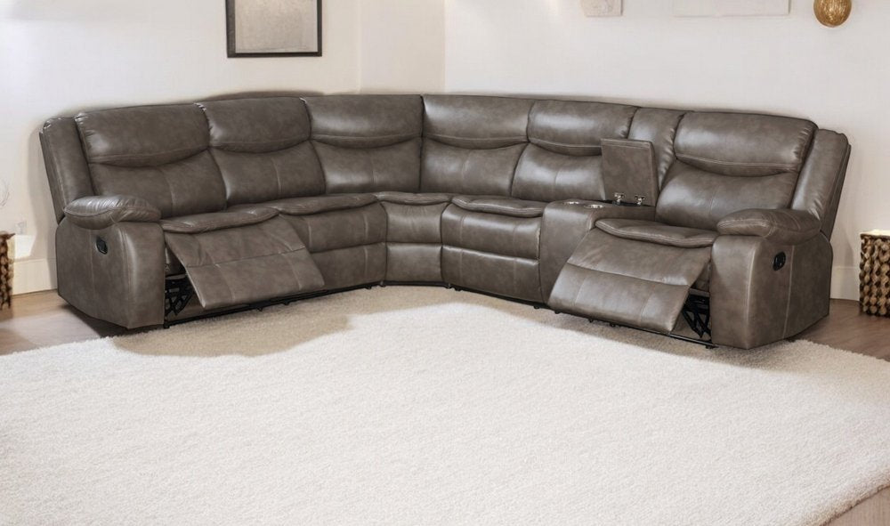 Taupe Faux Leather Reclining L Shaped Six Piece Corner Sectional With Console