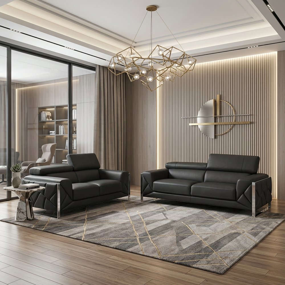 When it comes to indoor seating, this two piece indoor dark gray italian leather five person seating set has everything you need to get set and ready to relax. Upholstered in supple and luxurious genuine leather, this set has a rich and warm appeal. Coil spring seat construction provides excellent comfort by offering a responsive and supportive seating experience, gently contouring to the body's natural curves. The inclusion of a loveseat into your mix allows a fashionable seating option in a compact design. Gather with family and loved ones with this seating set that will bring you all together. 35-inch H x 90-inch W x 42.5-inch D