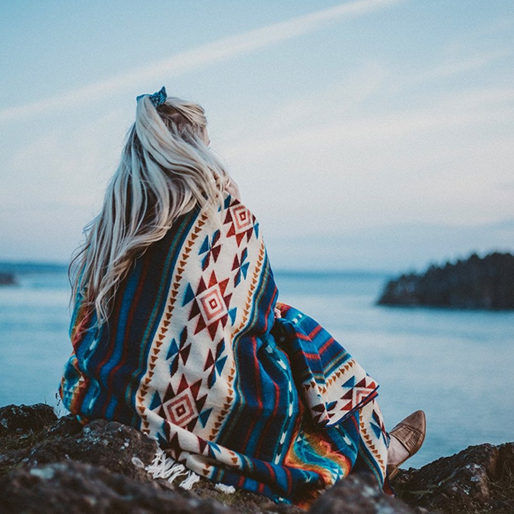 This Ultra Soft Southwestern Rainbow Handmade Beach Blanket features the warm rustic colors that give this blanket a great vibe. The rich navy with shades of red, orange yellow, and green come together to create an earthy palette that beautifully complements rooms with Southwestern and Native American decor. Generous in size this blanket is so versatile to be used on a bed, as an accent on your couch, as a hanging wall tapestry, and of course as beach or picnic blanket. It is not only super soft but made with hypo-allergenic materials and is light weight for year round versatility. Enjoy all life has to offer with this cool patterned cozy blanket. Queen size 93" x 82"