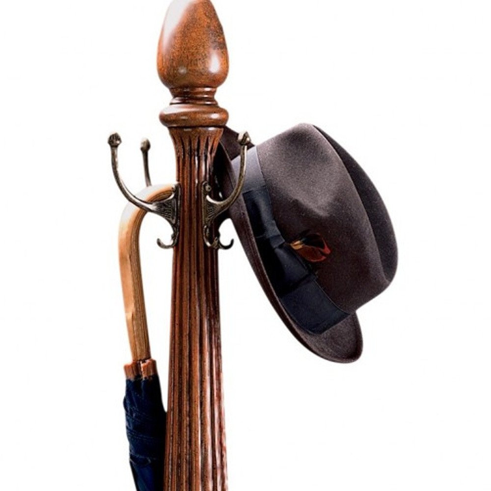 Decorate your house or office elegantly with this Unique Hand Carved Wooden Coat and Hat Rack. This appealing wooden rack in a traditional style and cherry finish features sturdy and practical hooks that allow you to hang various clothing items such as coats and jackets along with other accessories such as scarves, hats, bags, briefcases, laptop bags and umbrellas. The multiple brass plated hooks help to disperse pressure evenly for balance, while the strong wooden pole and base create stability and sturdiness, making it easy to hold heavy coats, jackets and suits. 68” H. 20” W. 18” D