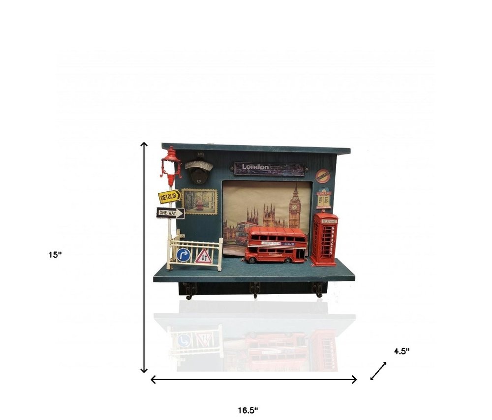 Charming and eye-catching, the Vintage London Double Decker Key Organizer features a replica of London's famous double-decker bus and a replica of a phone booth. It has three hangers for organizing your keys and a super convenient bottle opener. It is a great practical gift. 15'' x 16.5'' x 4.5"