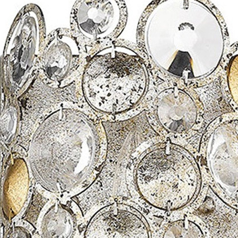 Add sparkle and shine to your space with the Vitozzi collection of lighting. Vitozzi features a plated and stamped metal shade adorned with high-quality K9 crystals in an antique silver leaf finish. An enchanting head-turning design.