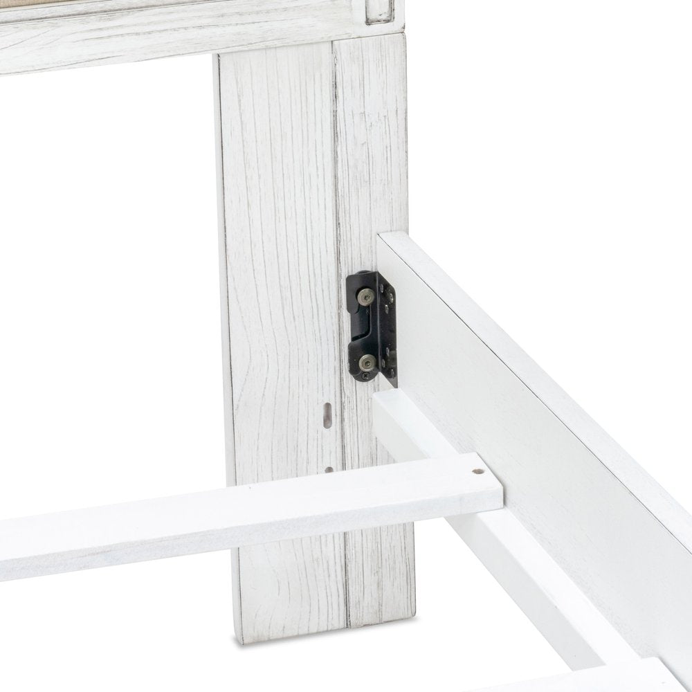 White and Beige Shiplap Texture Distressed Solid Wood And Linen King Bed Frame