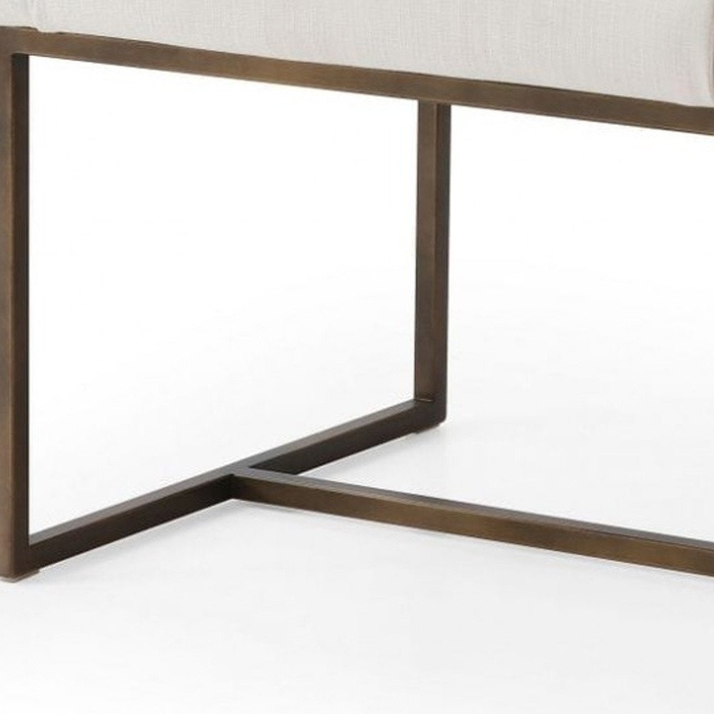 White and Brass Upholstered Fabric Dining Arm Chair