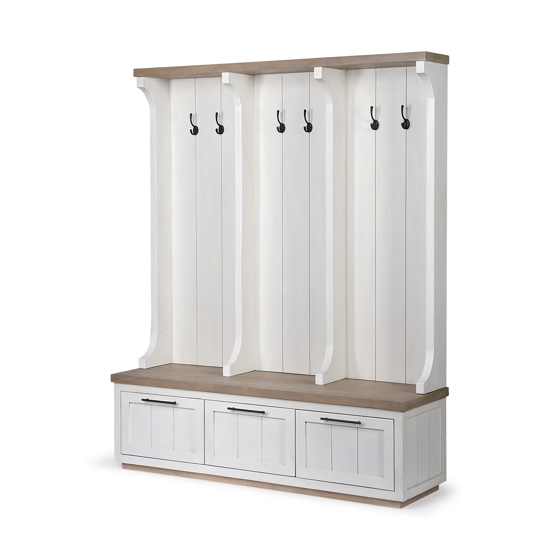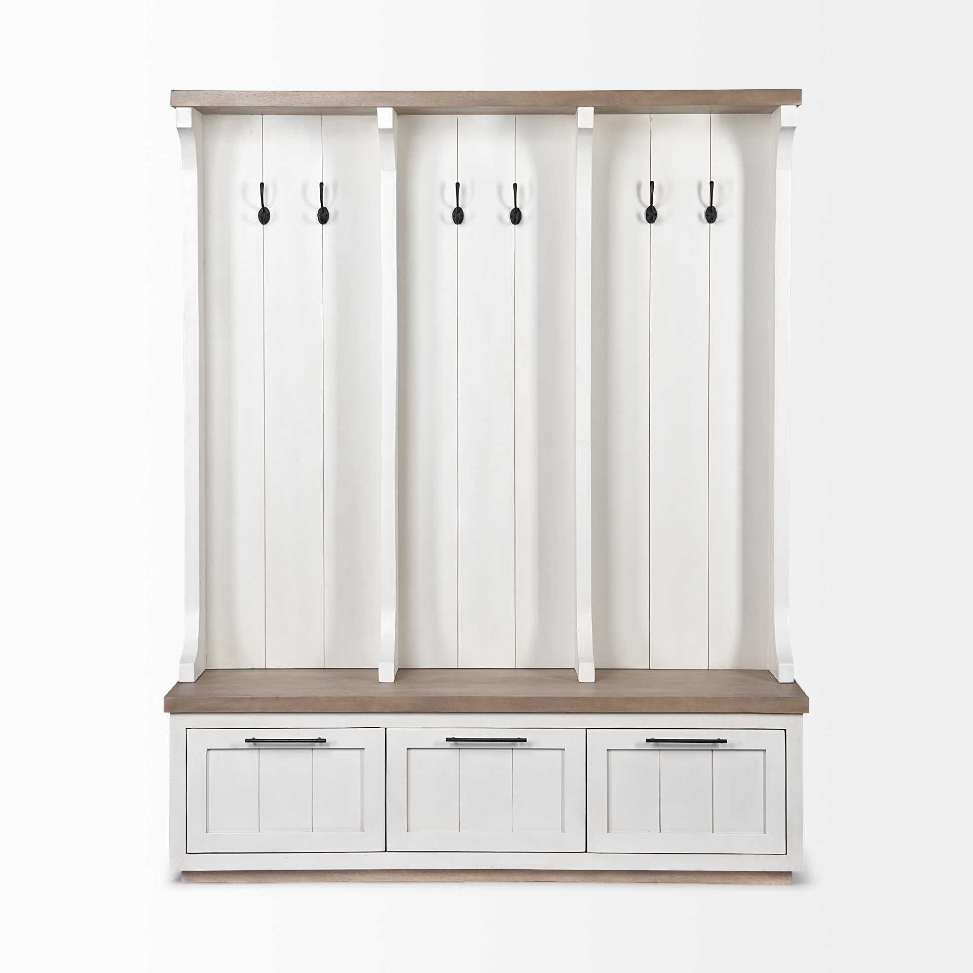 White And Medium Brown Wood Hall Tree With Storage
