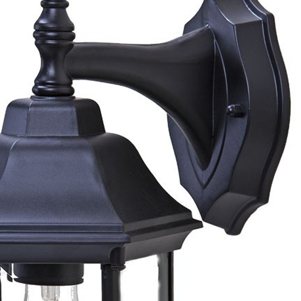 The perfect way to add some freshness and style to your outdoor décor, this Matte Black Clear Glass Swing Arm Wall Light will elevate your whole space. The medallion shaped wall bracket has a matte black finish on it and is attached to the top ornament of the light by a tapered swing arm. The ornament has carved details and flows into a two-step geometric roof. The frame has a simple six rod design ending in a flat diamond base. The matte black color of the frame and the clear glass panels work really well together and create a unique look. Use it on its own as a statement piece or in a pair around your front or back door. 13" H x 6.25" W x 7.5" D