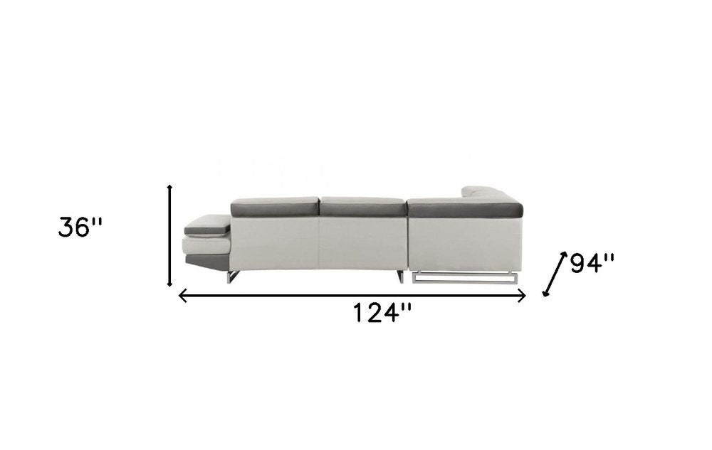 Made of the highest quality, supple leather, this white leather l shaped two piece corner sectional will be the star of your space. The high-grade premium leather used makes your lounging luxuriously comfortable and adds an elegant appeal to your space. Solid colors give you lots of decorative options and are easy to work into your decor scheme. Silver metal legs effortlessly elevate the room and add a touch of contemporary design. A great showpiece for your room, this sectional is a must have. 36-inch H x 124-inch W x 94-inch D