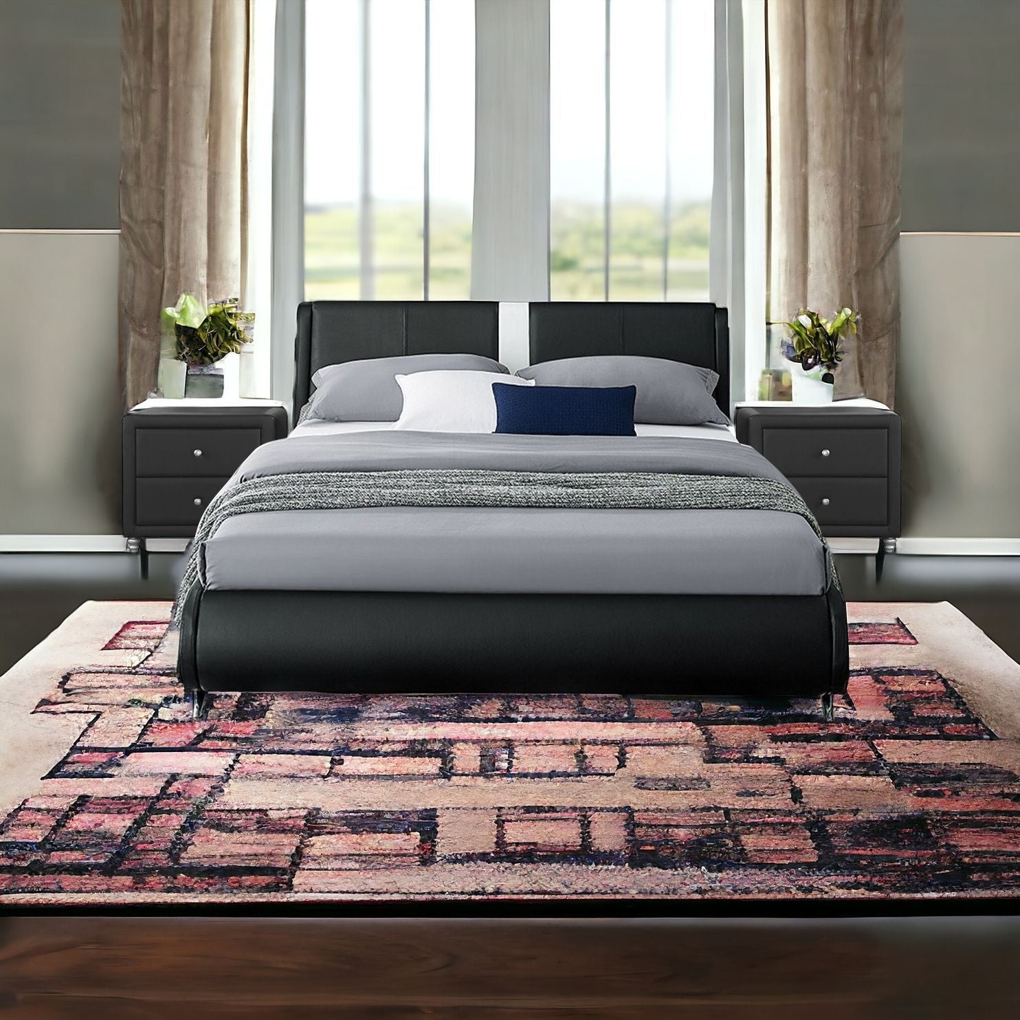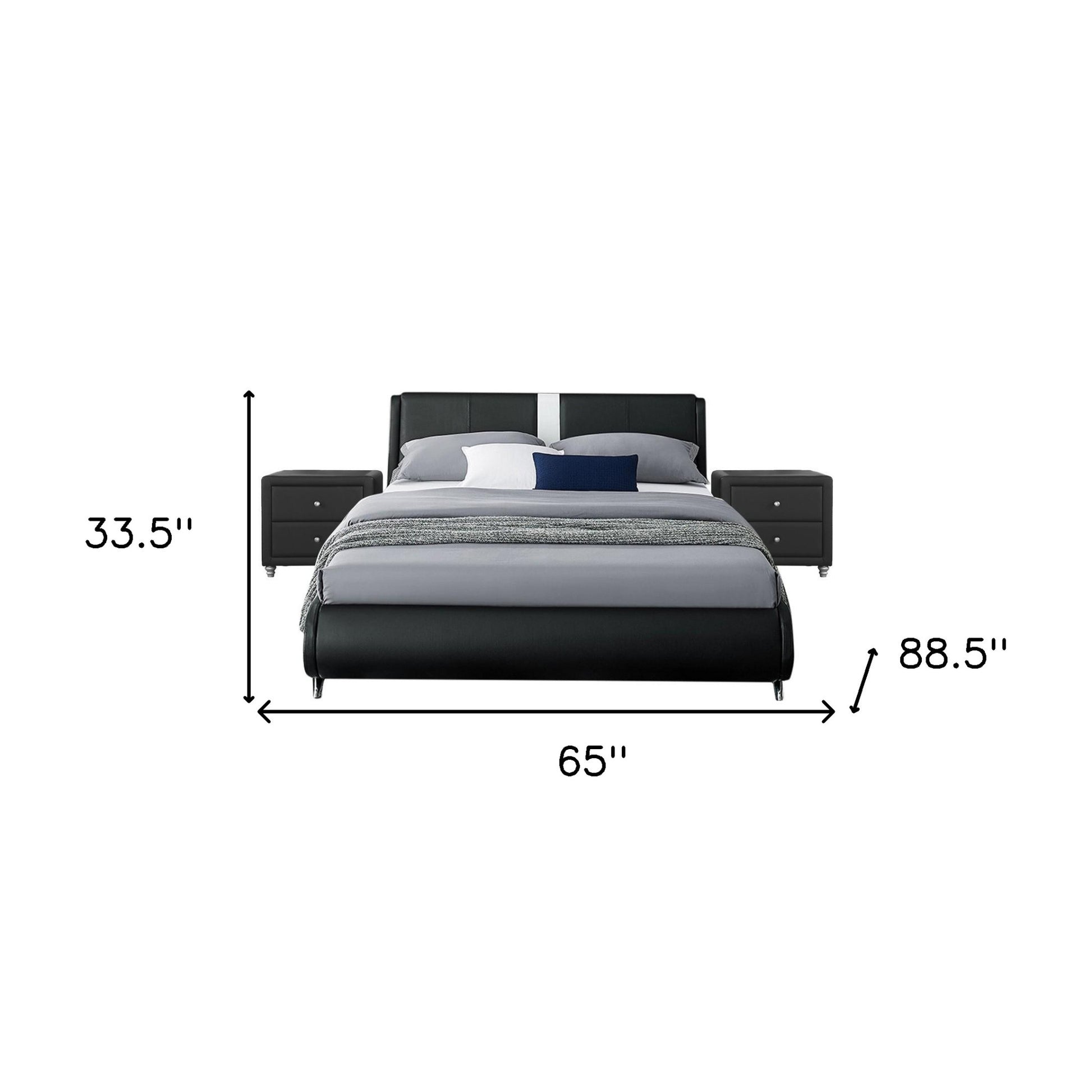 Drift off to a great night’s sleep with the luxuriously stylish White Platform King Bed. Upgrade your master bedroom or guest bedroom with this practical and modern bed, including a platform frame, headboard and comfortable padding. It has a white coloring that looks great in any room. Upholstery adds a layer of comfort and style that can dress up your room or pull off a casual look. You’ll love how this platform bed effortlessly balances firm support and cloud-like softness. The elegant white stripe down the black side offers a vibrant, minimalist design that matches any bedroom decor. If you’re looking for an affordable bed that comes with a luxurious sense of simple fashion, choose this bed. It’s a bed that looks and feels great, day or night. It also comes with two nightstands to put on both sides of your bed to place your drinks, remote, and other bedtime necessities! 33.5" x 65" x 88.5".