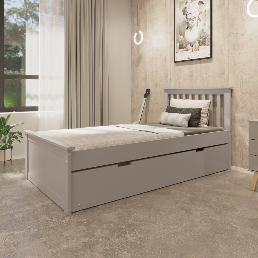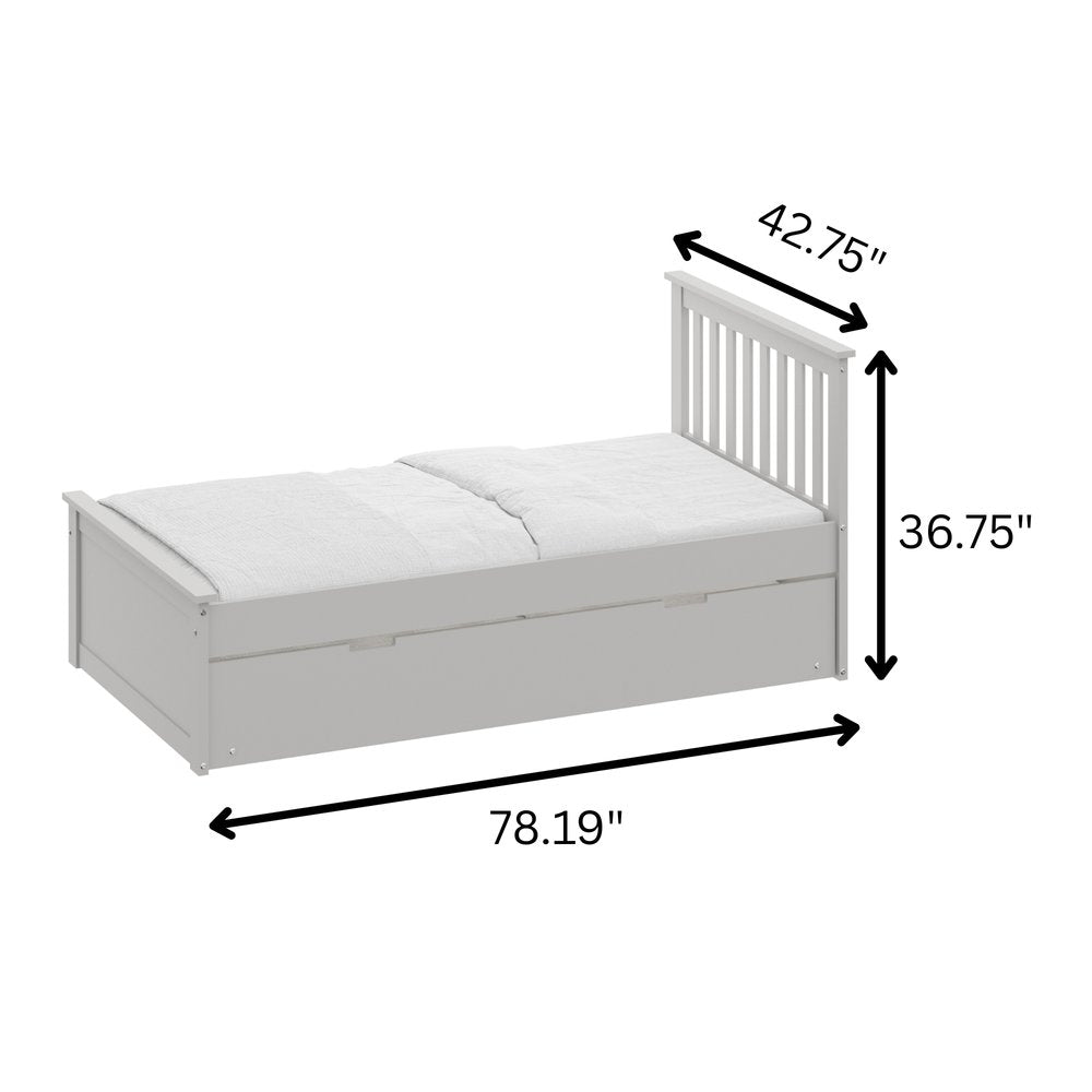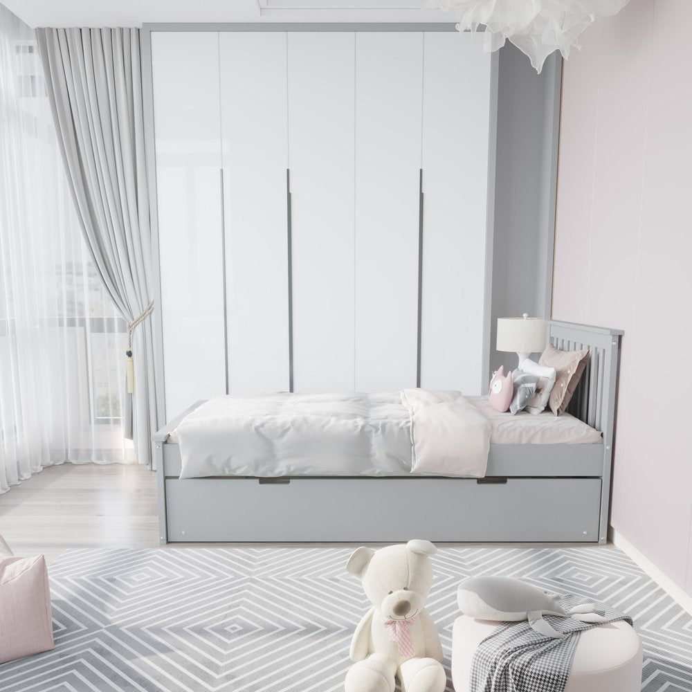 Gray Solid Wood Twin Bed With Pull Out Trundle