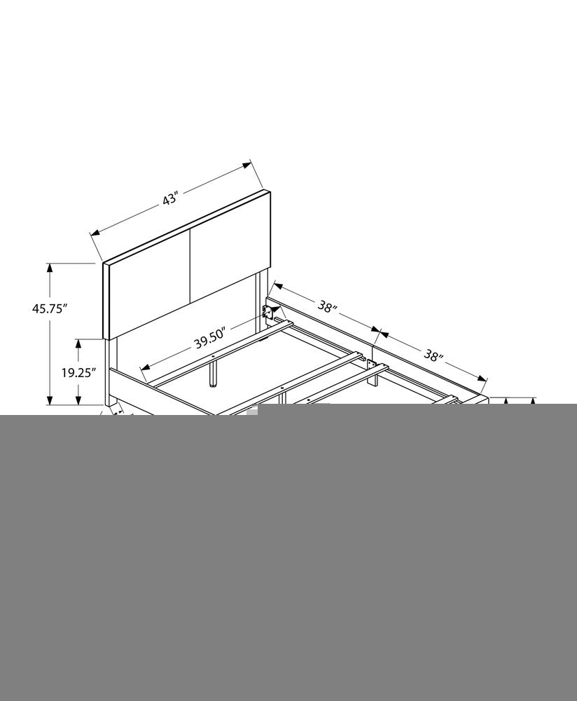 beautify your home, while enabling yourself the utmost comfort, with this classy and contemporary twin size bed. this bed is a high quality piece, which has a marvelous design that will bring versatility and diversity to the look and feel of your home. it's made from high grade solid wood, mdf, and foam, which also contributes to its overall gorgeous appearance, while still giving you all the stability you'll ever need. furthermore, it has a captivating leather look as well. as for measurements, they're 81 for height, 43' for width, and 45' for depth, and it weighs 52 pounds. this lovely bed will be the perfect piece for any decor.