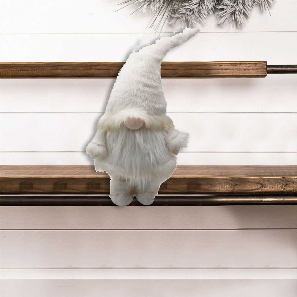 30" White Fabric Christmas Standing Gnome Tabletop Sculpture
