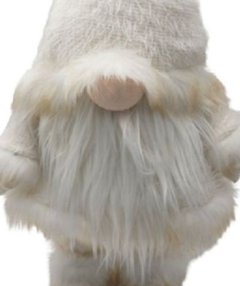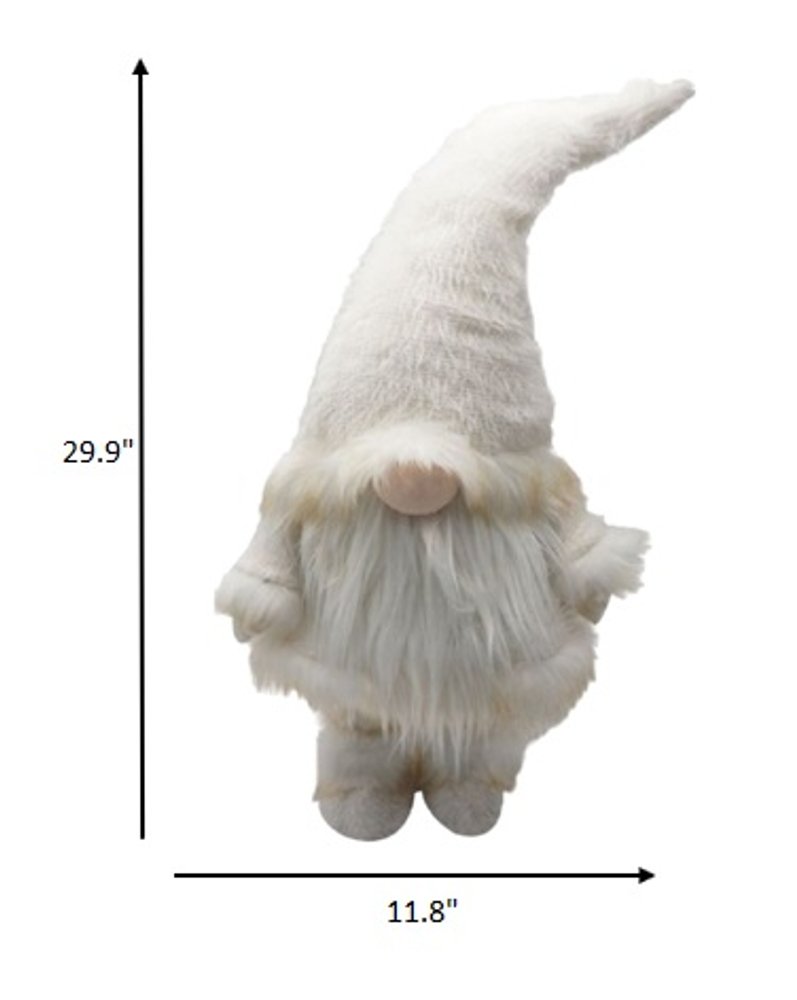 Set a festive christmas mood with this 30-inch white fabric christmas standing gnome tabletop sculpture. This white hued piece represents high quality, expertly made from high grade fabric. It's a perfect addition for those who love an up-to-the-minute look and feel. 29.9-inch h x 11.8-inch w x 8.3-inch d.